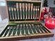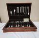 • 1847 Rogers Bros FLAIR Flatware For 8 with Wooden Chest 56pcs + 3pcs Extra Diff