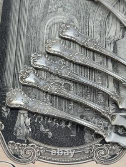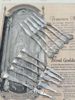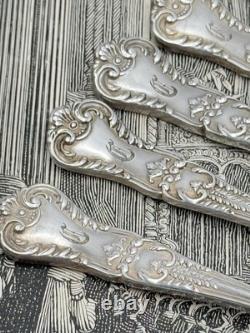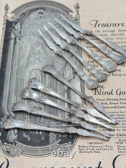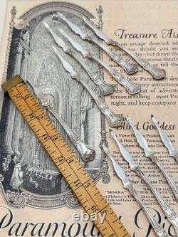 This product is a set of 10 antique silverplate nut picks made by Gorham in 1897. The monogrammed design adds a unique and rare touch to the historic piece. Perfect for collectors of fine flatware or those looking to add a touch of elegance to their dining experience, these nut picks are a rare find from the late 19th century.