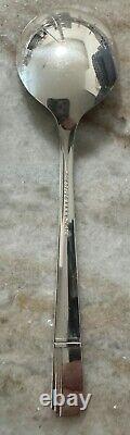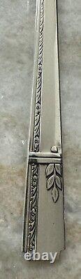 1 large master butter flat knife. Vg, pre-owned set, some pieces look barely used, some have very light surface scratching, about 5 of the place spoons have a lil pitting on the bowl, can most likely be polished and buffed.