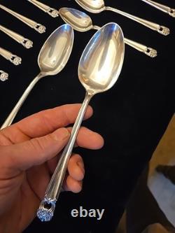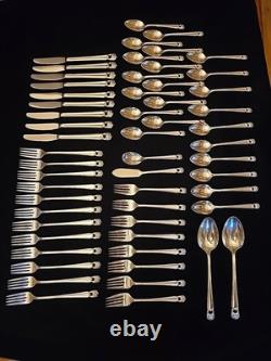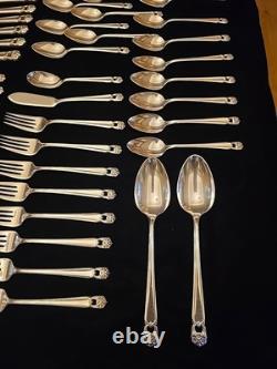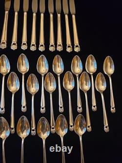 Very nice set of rogers brothers Eternally yours silver plate flatware. 23 tea spoons, 8 salad forks, 9 grill knives, 12 grill forks, 1 butter knife, 1 jelly or sugar spoon, and 2 serving spoons.