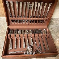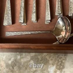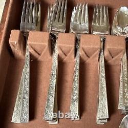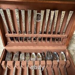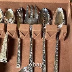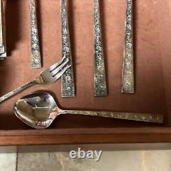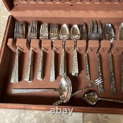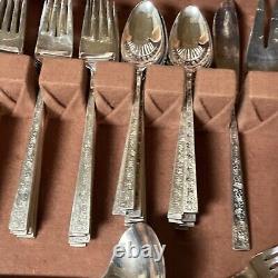 Enhance your dining experience with this exquisite 1847 Rogers Bros silver lace silver plate set. The set includes serving pieces and is perfect for 12 people. The mid-century modern style and silverplate composition make it a timeless addition to your collection.