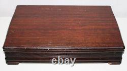 Case is: 17 1/4 inches wide by 11 1/4 inches deep by 3 3/4 inches tall. Condition : Overall Excellent- some patina on a few pieces.