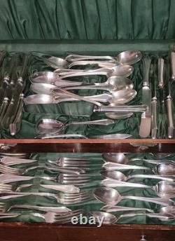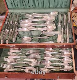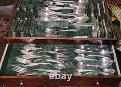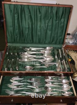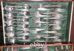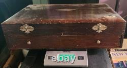 The forks and spoons do not stick to an earth magnet... Only the knife blades and part of the knife handles where the blade is inserted. Waldorf pattern from the 1800's. Wood Dove Tailed case with green lining in all weighs approximately 10lbs..