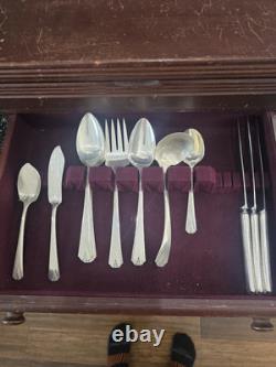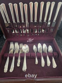 The product is a 1905 Victor Co. International Silver silverplate flatware set in the Art Deco style.