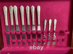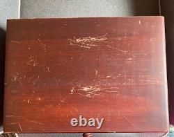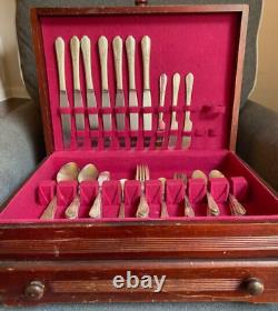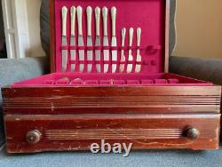 The set includes a variety of pieces to meet all your dining needs, with no detail overlooked. Whether you are hosting a formal dinner party or a casual family gathering, this set is sure to impress. Add this stunning set to your collection today and enjoy the beauty and functionality it brings to your table. Comes with wooden storage box as seen in the photos 16 x 11.5 x 7. Ice Tea/ Sundae Spoons Qty 8.