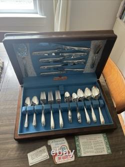 Elevate your dining experience with the 52-piece Roger's Brothers Silverplate Victorian Daffodil Flatware Set, a true embodiment of elegance and timeless design. Crafted by the renowned Wm. Rogers & Son, this set features the intricate Daffodil pattern, which adds a touch of Victorian charm to any table setting. Each piece reflects the exceptional craftsmanship of the mid-century, with a silverplate composition that ensures durability and a lustrous finish.