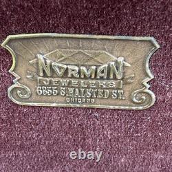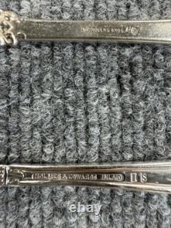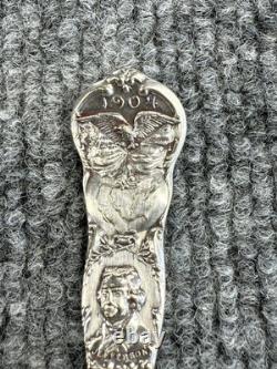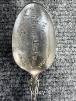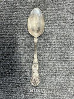 (1) Leaf-style sugar tongs stamped "Sterling" with a bird hallmark. Comes in original Norman Jewelers case from 6855 S. Most pieces marked INLAID I. One-of-a-kind 1904 souvenir spoon with stunning raised detail.