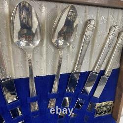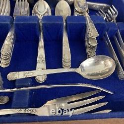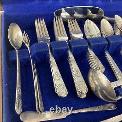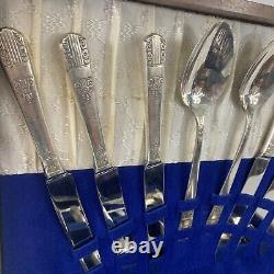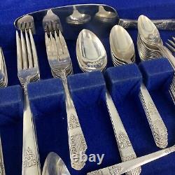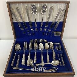 63 Pieces Oneida Wm Rogers Silverplate Harmony 1938 Set In Wooden Box