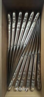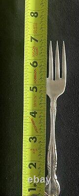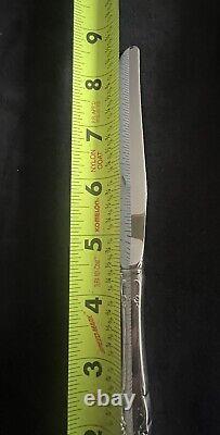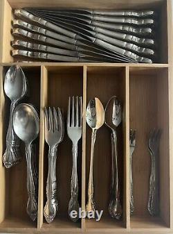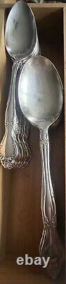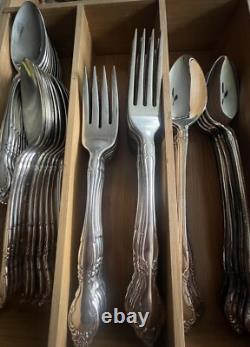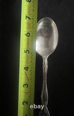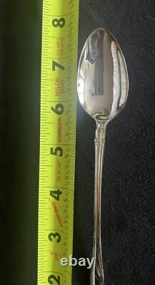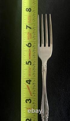 Crafted from high-quality silverplate, this flatware is durable and elegant. Ideal for collectors or anyone looking to add some vintage flair to their dining experience. 11 dinner forks 7.5. 11 salad forks 6.75. 11 oval place/soup spoons 6.75.