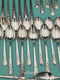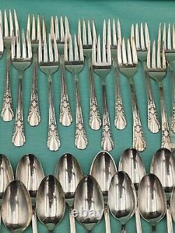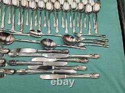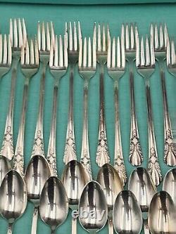 Lot of 98 pieces of Wm Rogers mfg co original rogers Avalon/Cabin pattern silverplate flatware. These are Vintage and pre-owned so will have use and storage scratches.