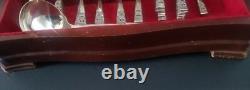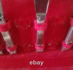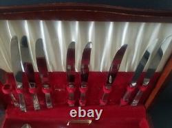 Tarnish Proof case has vintage wear on lining with 3 holder rings missing. Some vintage scratching on wood.