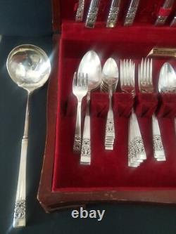 The Antique Community Plate 53 Piece Silverplate Flatware set from 1936 features a Coronation pattern and comes with a tarnish-proof case for safe storage. This collection of silverplate flatware is not only stylish but also practical, as it is designed to last for years to come. Perfect for collectors or those looking to add a touch of vintage charm to their dining set, this set is a true testament to the quality craftsmanship of the Community Plate brand.