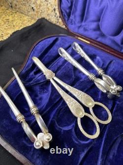 ANTIQUE Martin Hall SILVERPLATE DESSERT SERVING SET IN Wood CASE