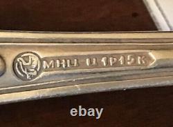 I offer up for sale, this Antique Russian Soviet Era Silverplate flatware - lot of 17 pcs Kolchug-Mizar MHU. Soviet era silverplate flatware, the.