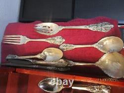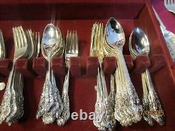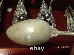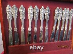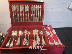 It has some chips and marks. I think the box was meant to hold a 12 piece setting. I will give you the numbers of each piece below. It all needs cleaned, as it has a white film on a lot of the pieces. I also noticed that when I cleaned a butter knife, there is still a line from where it fit into the box.