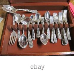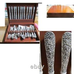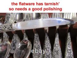 Beautiful Godinger Flatware Set Olde Bouquet Silverplate Roses 65 Pieces, 12pc serving. They are tarnished from sitting but a good polishing will make them shine. The condition is great with really no wear to them.