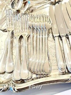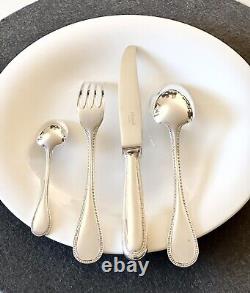 Prestigious silver plated flatware set by CHRISTOFLE, France. Renown timeless and elegant model, Christofle PERLES. Exquisite flatware set for luxurious dinner experience.
