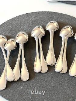 And classic hallmarks of House of Chrsitofle. 12 x Dinner Knives 9.8. 12 x Dinner Forks 8. 12 x Soup Spoons 8. 12 x Tea Spoons 5.25.