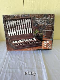 F. B. Rogers & Sons French Rose 64 Pc Sealed Flatware Set Wooden Chest New