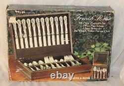 FB Rogers FRENCH ROSE DESIGN SILVERPLATE FLATWARE, 64 PIECES, Hostess Set withBox
