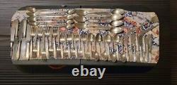 Elevate your dining experience with this exquisite Grosvenor Community 1921 Silverplate flatware set. This set includes 60 pieces, each crafted with intricate Art Deco designs. Perfect for a service of 8, this set is ideal for any formal occasion or everyday use. The silverplate composition adds a touch of elegance to your table setting, while the pattern's Grosvenor design is a timeless classic. Ideal for antique collectors and silver enthusiasts alike, this set is a must-have addition to any collection.
