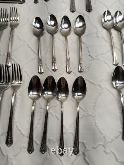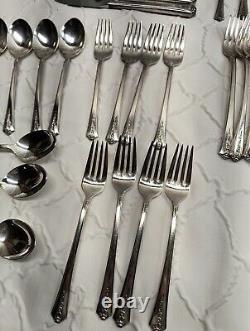 The set includes various utensils and serving pieces, all crafted by Holmes & Edwards to add elegance to your dining experience. This is a service for 8 with a few serving pieces all in a beautiful storage box. Please look over all of the pictures for the best description and details of this listing.