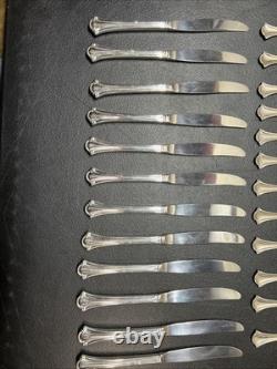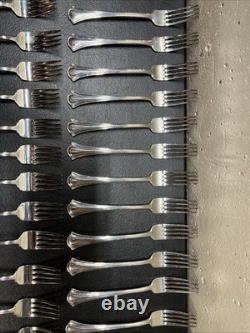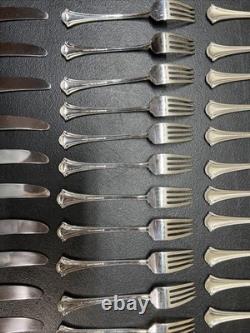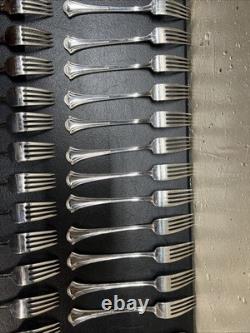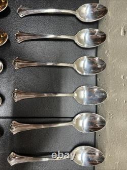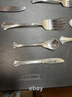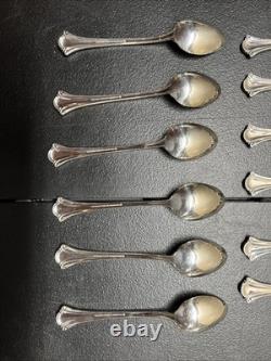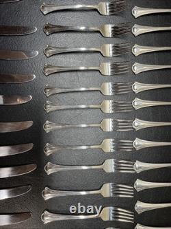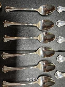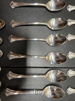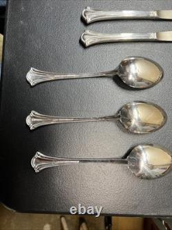 The International DEEPSILVER Silverplate Flatware sets include 12 sets of resplendence patterned silver flatware, perfect for adding a touch of elegance to any dining table. This glossy silverware set is made by International Silver and features a sleek silver plated finish. The set also comes with a display case, making it a stylish and practical addition to any kitchen or dining room. Made in Korea, Republic of, this high-quality flatware is sure to impress your guests at every meal.
