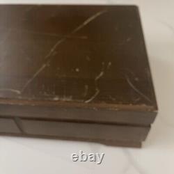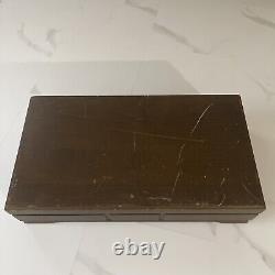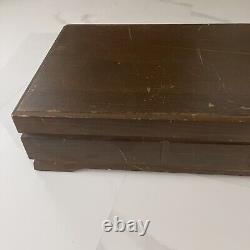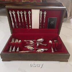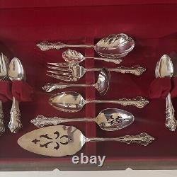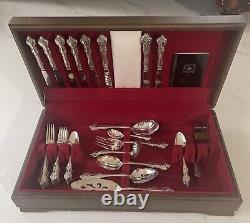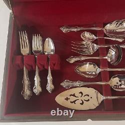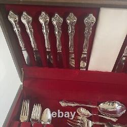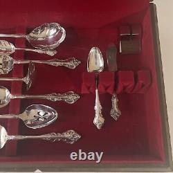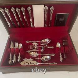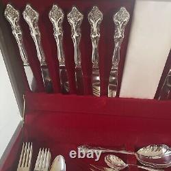1 Master Butter Knife 6 3/4 Length. 1 Gravy Ladle 6 1/2 Length. 1 Casserole Spoon 8 7/8 Length. 8 Dinner Knives 9 1/4 Length and One Flat Cake or Lasagna spoon 10 1/2 inch and sharpener case shows wear.