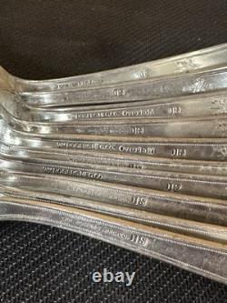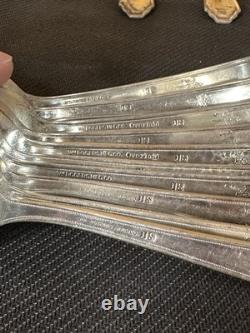 This set does have some mild tarnish marks as seen in the photos. I believe that a good cleaning by a professional (or someone that knows the right equipment to use) with the proper cleaning equipment would remove a good majority of the tarnish! Please see all pictures for full condition! Some of the spoons are marked with "Overlaid".