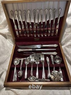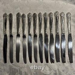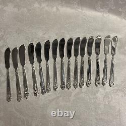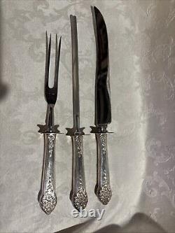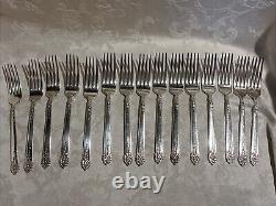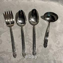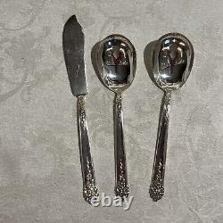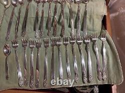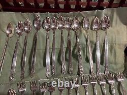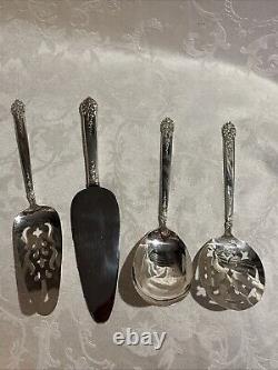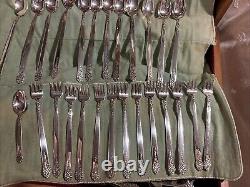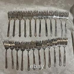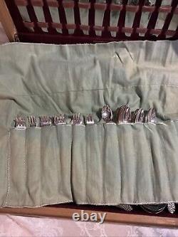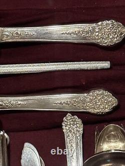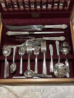 Beautiful 146 piece set of King Edward -Moss Ross Pattern by National Silver Co and 4 pieces are Sheffield Silver Plate and what's in photos is what you receive. Some pieces have more wear than others and could be cleaned. 24 King Edward salad dessert forks. 15 King Edward dinner fork. 12 King Edward gumbo or soup spoons. 15 King Edward butter knives. 1 King Edward tomato server. 1 King Edward casserole server. 1 King Edward butter knife. 2 King Edward sugar spoons. 1 Sheffield silver plate pie server. 1 King Edward cake server. 1 King Edward gravy ladle. 2 King Edward serving spoon. 1 King Edward serving fork.