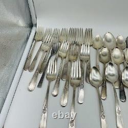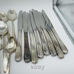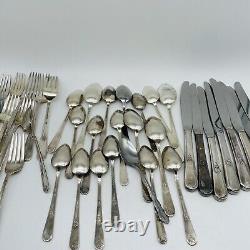 This large silverware set includes Holmes & Edward's inlaid silver spoons, knives, and forks. The elegant design is perfect for any dining occasion, whether it's a formal dinner party or a casual family meal. The silverplate composition adds a touch of sophistication to any table setting. The set is ideal for collectors of antique silverware or those who appreciate the timeless beauty of Holmes & Edwards pieces.