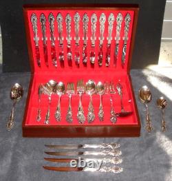 This flatware comes in a wood chest with many hostess serving pieces. The back of the handles read: 1881 ROGERS ONEIDA LTD. Here is what is included with this set.