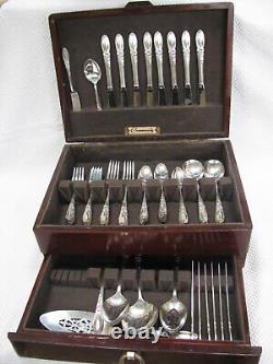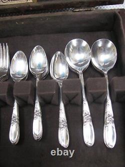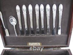 Offered for your consideration is a silverplate flatware set of 64 pieces in the White Orchid Pattern by Oneida. This pattern was introduced by Community Silver circa 1953. 8 serrated dinner knives 8 ½. 8 dinner forks 7 ½.
