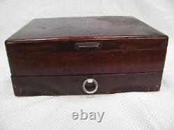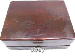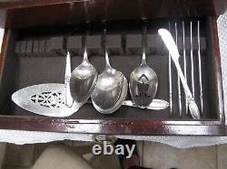 All of the pieces are in very good used condition with no loss of plating and normal scratches from use. Each piece has been carefully hand polished and is ready for your use.The original chest shows wear as you see in the pictures.