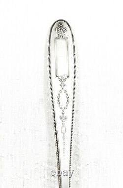 Here is a large set of silver plate flatware in the Grosvenor pattern made by Oneida Community Plate in 1921. There are a total of 137 pieces in a large felt lined silver chest. This set has been used but is in good condition and will give you service for many years to come. The pieces in this set are. 12 hollow handled dinner knives 9 3/4"; 11 hollow handled dinner knives 9 1/2"; 5 hollow handled grille knives 8 3/8";24 dinner forks 7 5/8"; 4 grille forks 7 1/2"; 24 salad forks 6 1/4" (5 have monogram R on them); 35 teaspoons 6 1/8"; 3 tablespoons 8 1/4"; 4 - 5 o'clock spoons 5 1/8"; 5 - fruit or orange spoons 5 1/2"; 1 sugar spoon 6"; 1 master butter knife 7 1/4"; 5 individual butter spreaders 6 1/4"; 1 short handled pickle fork 6 3/8"; 1 fruit knife 6 1/2"; and 1 cream ladle 6".