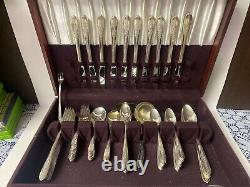 Oneida Silverplate Flatware ROSEANNE 77pc Service for 10 Silverware Set w Wooden Chest. This beautiful set is in very good condition and was manufactured by the Oneida company. This set is a complete service for 10 with some serving pieces.