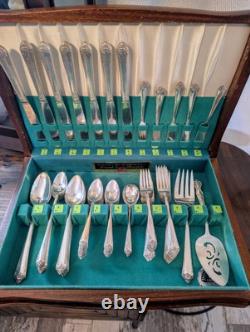 The Rogers & Bro Reinforced Plate I S Flatware Set includes 67 pieces featuring the Starlight pattern. Made of silverplate, this set is a classic example of antiques. With the renowned Rogers Bros brand, this flatware set is sure to add a touch of elegance to any dining table.