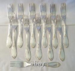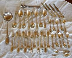 FRENCH SILVER PLATE MIXED LOT FLATWARE. They have maker's mark, which is a five-point star followed by the initials AJD. The maker is AIME-JEAN DURENT, c.