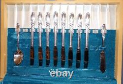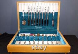 The White Orchid pattern is one of the all-time flatware classics with a charming and ageless design. This set comes in it's original groovy atomic style chest with it's original paperwork.