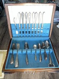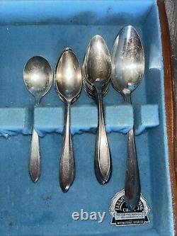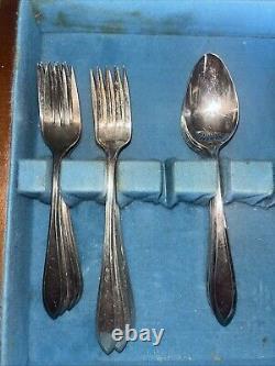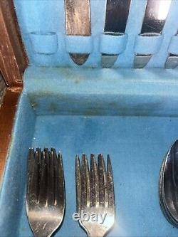 This is an incomplete set of silverware that was my great grandparents. There are some scratches consistent with use. There are also some discolorations on the blue felt inside.