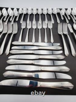 The set includes 50 pieces made of silverplate. The elegant and timeless design of the wheat pattern adds a touch of sophistication to any dining table. Perfect for collectors of antique silverware or those looking to enhance their dining experience with a touch of vintage charm.