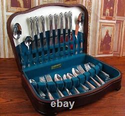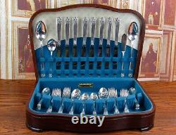 Flatware Silverplate Set is in original case, the flatware set is in very good cosmetic condition, so gorgeous scalloped designs; pre-owned and vintage pieces condition vary some showing slight wear than others, NO loss of silver in excellent vintage condition, the set comes in its original wooden case tarnish resistant MAHOGANY storage case from around 1930s, that is in great cosmetic condition the so fantastic look, the case is showing a light ding above it (last photo), but it is still so solid, does not affect in any way its durability, the silverplate flatware is expertly polished and properly washed after polishing, ready to use. The polishing technique is not something that can be done quickly in a couple of hours, it takes more time, effort, and special care for every piece we treat, this is to guarantee that you will receive not an item but a piece of art. WHAT IS INCLUDED: (52 Pieces). THE SILVERPLATE FLATWARE IS BRANDED. THE WOODEN BOX IS LABELED. / TESTED AND APPROVED BY THE LABORATORIES OF /. 16 1/2 Length (At the Front). 15" Length (At the back) x 11" Width x 3 1/2 Height. 3 Pounds 3 Ounces (Packaging Not Included).